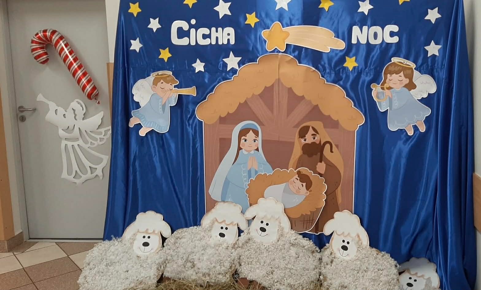 • W dniu 12.12.2025 roku w naszej szkole odbył się kiermasz świąteczny. Przedszkolaki z grupy Biedronki przygotowały Jasełka, podczas których zaprezentowały swój talent sceniczny. Dziękujemy rodzicom za zadbanie o piękne stroje, a dzieciom za cudowny występ. Mamy nadzieję, że udało nam się wprowadzić wszystkich w świąteczny nastrój.